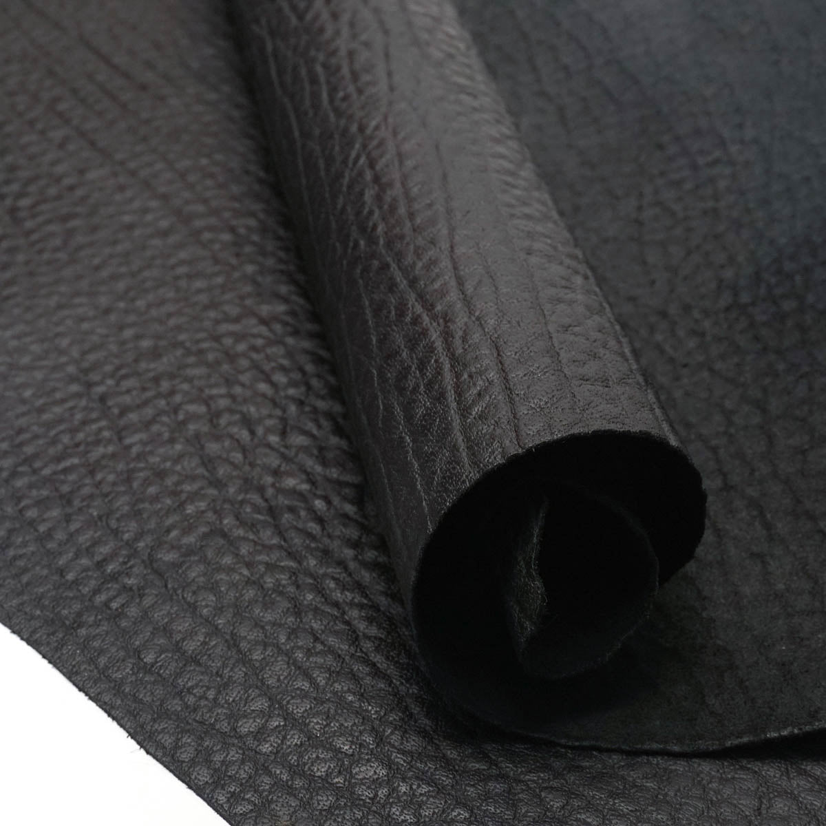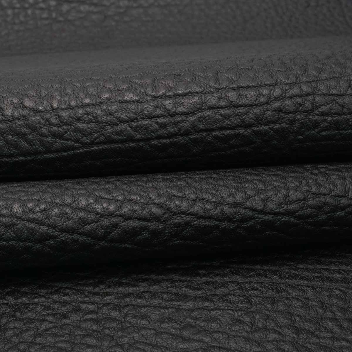 Special Purchase! Antique black finished cowhide splits embossed with a flat, semi-shrunken, pebble grained print. An economically friendly choice of leather that would be great for a plethora of leather projects! Wallets, card cases, handbags, clutches, and all sorts of other personal leather goods!