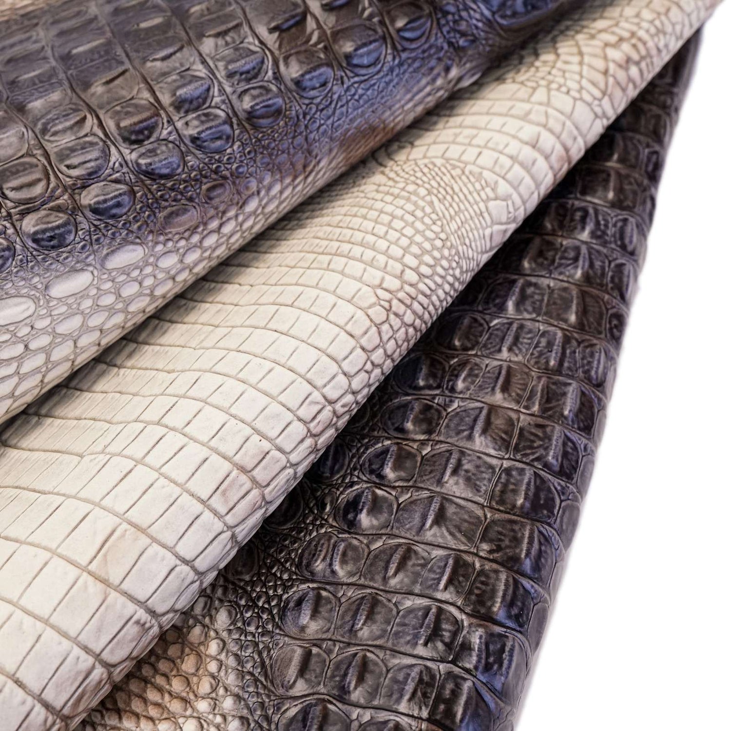 These are large cow sides that have been highly embossed with a distinct hornback crocodile print, in an alternating pattern, that looks so good it’ll just about pop your eyeballs out! This gorgeous, upper-end leather has been tanned in Italy, and each piece individually finished with a hand-rubbed tipping process, resulting in beautiful two-tone color effects, richness, and depth.