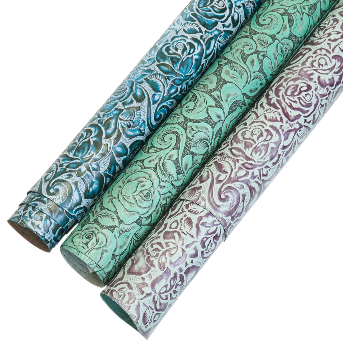 These lightweight sides have been embossed with a large, classic floral print and available in several colors, including two-toned and rustic finishes. finished in several a semi-firm “ish” hand with a bit of body making them simply perfect for projects such as handbags, cases, etc. Even upholstery applications such as seat covers and inlays on cabinets, and so on. Whatever you make with these will be sure to attract some notice!