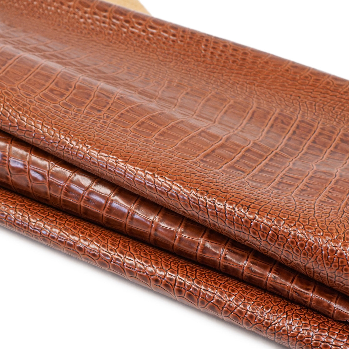 These gorgeous sides are embossed with the classic small croco print and have been beautifully finished, lending to a rich two-toned look. These sides sport a semi-firm hand, which makes them perfect for bags and laminated belts. Tanned in Italy. Sides average 18-22 square feet and are about 3-1/2 oz. Sold by the square foot. Item #57-1207.