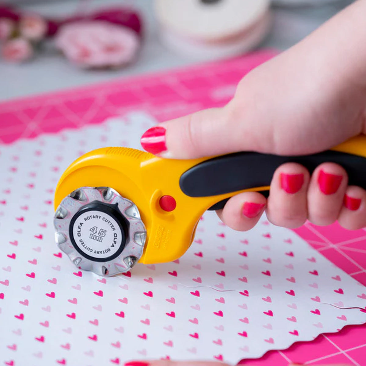 - Always use OLFA rotary blades on an OLFA Self-Healing Rotary Mat to not only protect work surfaces, but also prolong your blade life.