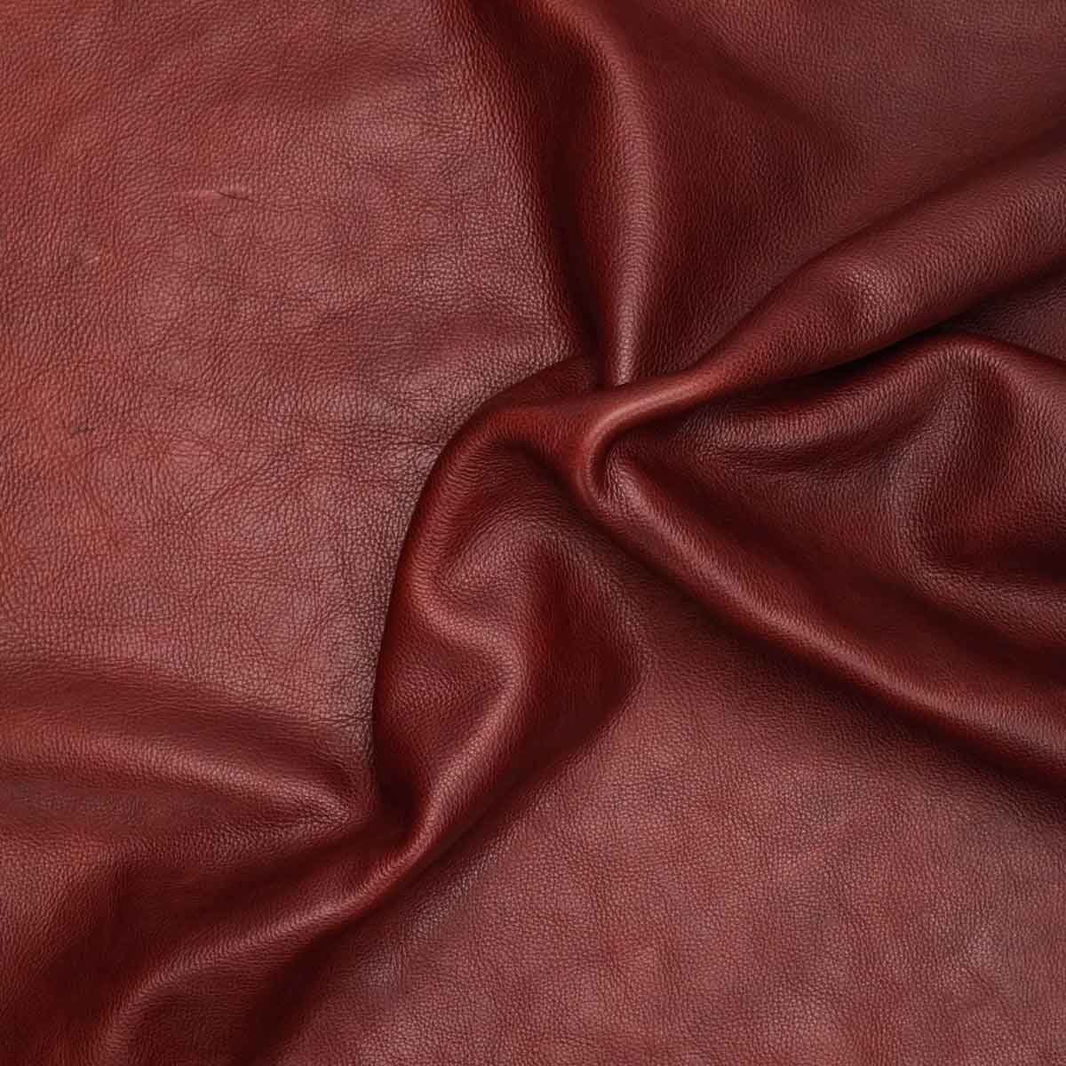 Sold By: Per Square FootThese are large, robust sides that have been milled for a softer hand and pebbled grain and the result is fabulous! This is very high-end leather that can be used for making shoes, boots, heavy vests, and jackets. Featuring a rich cherry wood color with a slight pull-up that contrasts beautifully with the color, resulting in amazing highlights. If you’re looking to make expensive satchels, bags, and other weighty goods, this is the leather for you!