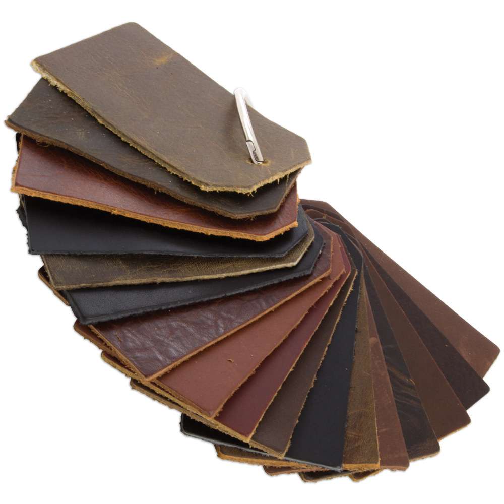 Pick up one of our sample swatch rings today to satisfy any of the deep and mystifying questions you may have about leathers we carry. The swatches are roughly 2"x3", so they're plenty large enough to get an understanding of the weight and hand of the leather!