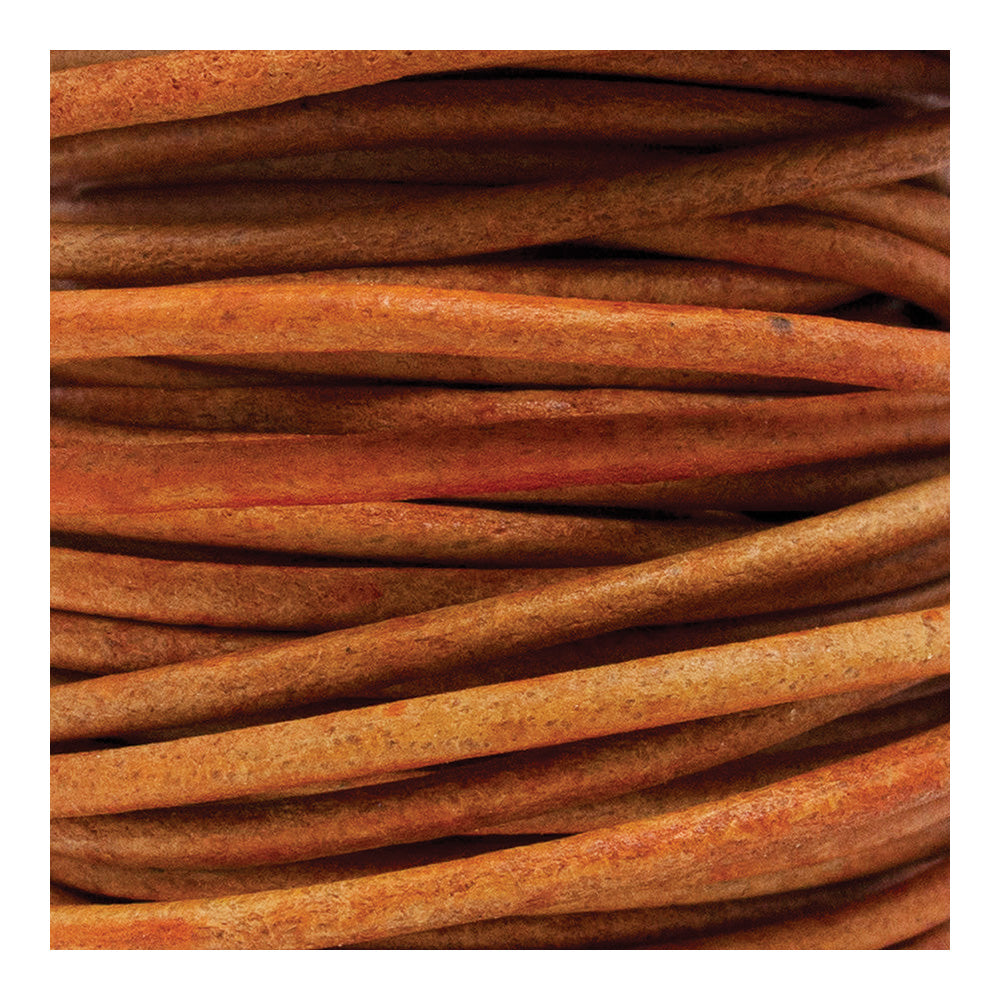 Color: Natural Orange Lace Thickness: 2mm Quantity: 10 Meter Spool Precision cut from the center of the hide, our round leather lace offers the finest in quality and consistency. Great for braiding, beading, necklaces, fine lacing, earrings, hair ornamentation, hatbands, and more. This is genuine leather, folks. The goood stuff! Available in 16 wonderful colors. Item Number: 221-242110