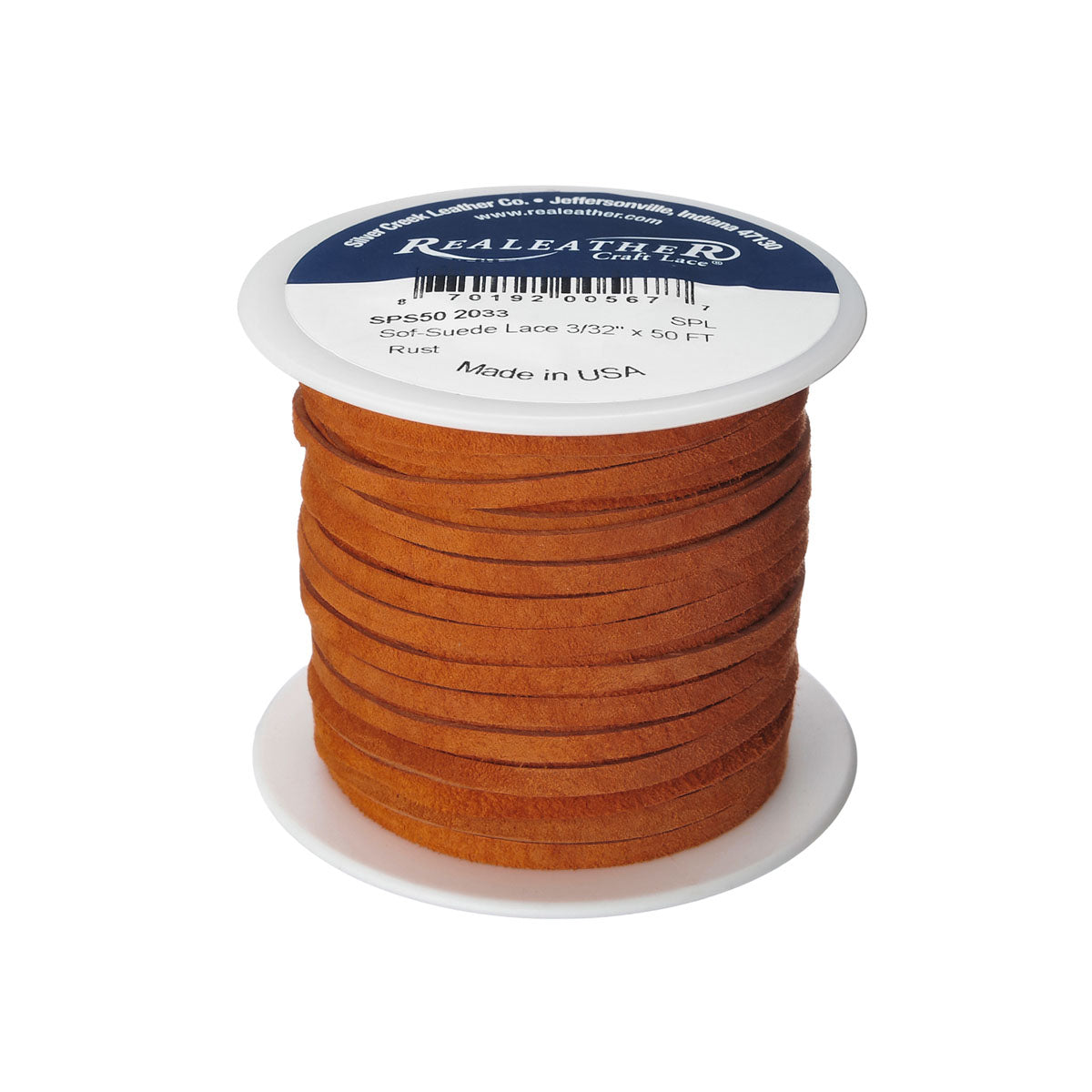 Cut from very heavy pigskin suede, it's super strong, great for jewelry use such as chokers, necklaces, Native American things & such. Great color selection, and comes in a width that is very difficult to find! 3/32" x 50 ft. Made in U.S.A. Item #28-34.