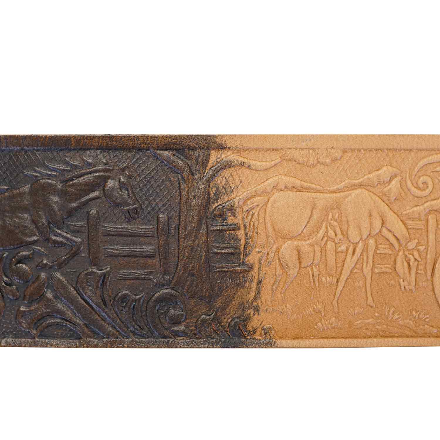 Fiebing’s Vintage Gel creates a two toned antique look or patina to natural leathers while emphasizing hand tooling or embossing effects.