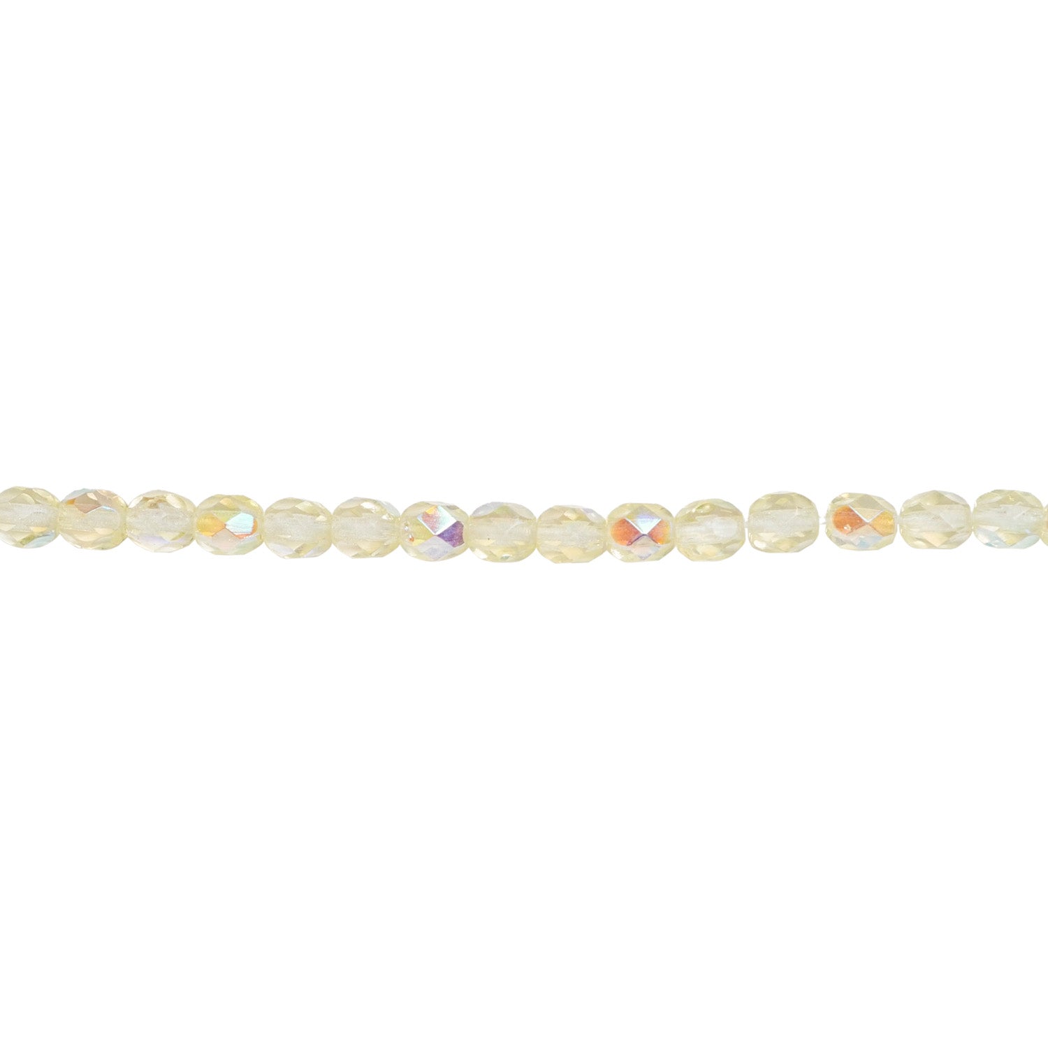 Color: Jonquil AB Size: 4mm Quantity: 50 Pieces Fire-polished beads are full of vivid color. These mold pressed, faceted glass beads are fire-polished to produce the softer edges that allow the color to glow from within. Smaller 6mm beads are ideal as spacers in strands and larger sizes make a beading statement. Item Number: 339-61