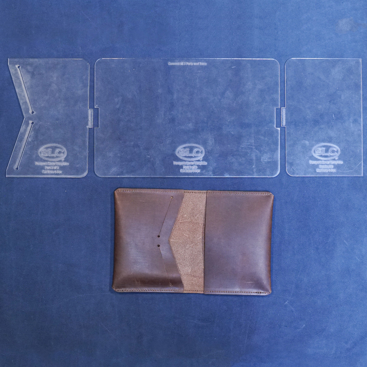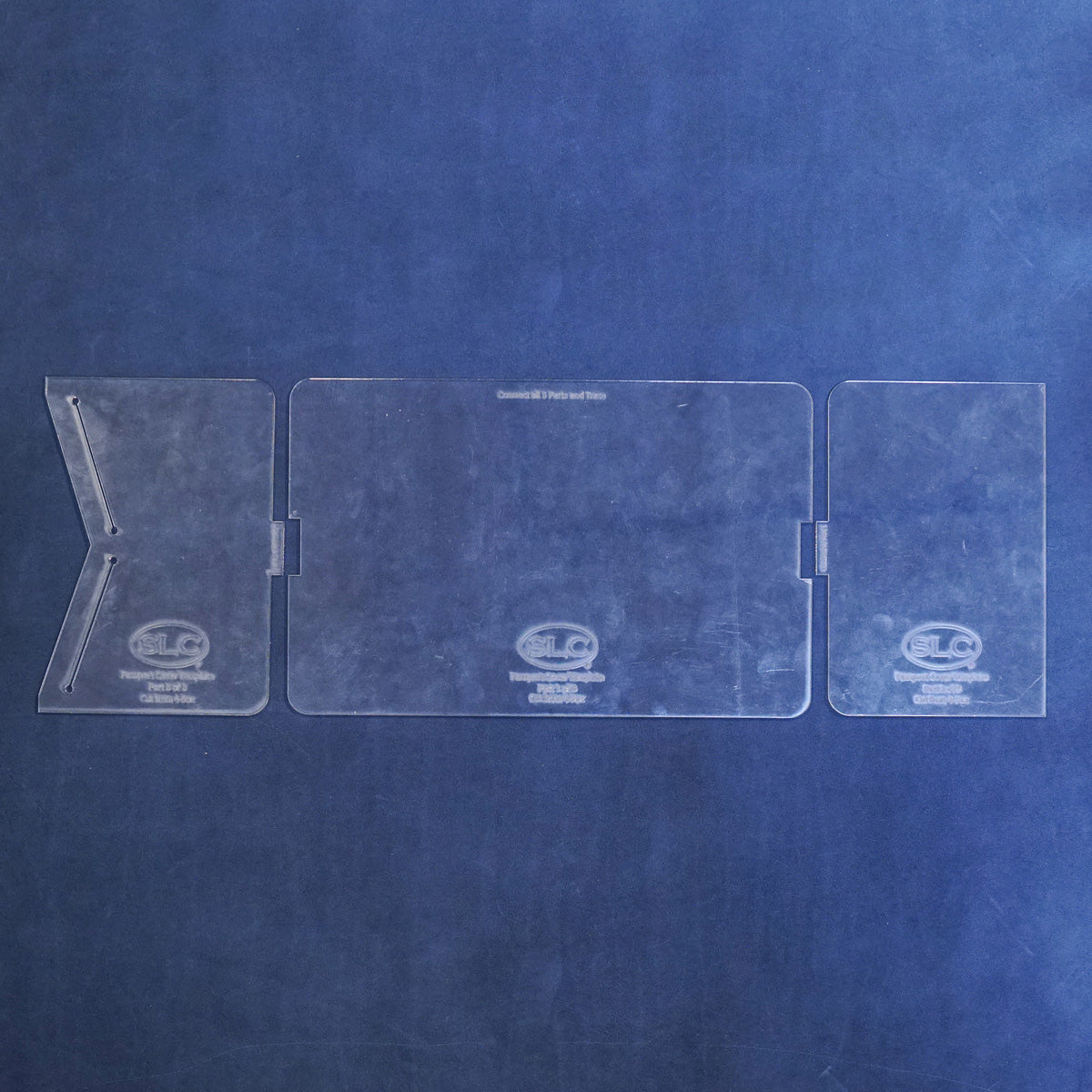 Create a custom Passport Cover with ease! This three-piece set includes durable acrylic shapes that include the main body, the front inside pocket with two card slots, and the back inside cover. You will need approximately two square feet of 4-5 oz. leather to complete. For a more professional look, you can line it with thin leather, fabrics, or other material. Created in the SLC shop from durable acrylic makes these the perfect tools for those who want more longevity out of their templates. Can be reused time and time again without worrying about the original integrity of your template wearing out over time, which tends to happen with most paper, cardstock, or heavy bag stiffener options. Includes detailed instructions - simply cut out pieces using the templates and assemble according to instructions. Can easily be adapted for left-handed use.