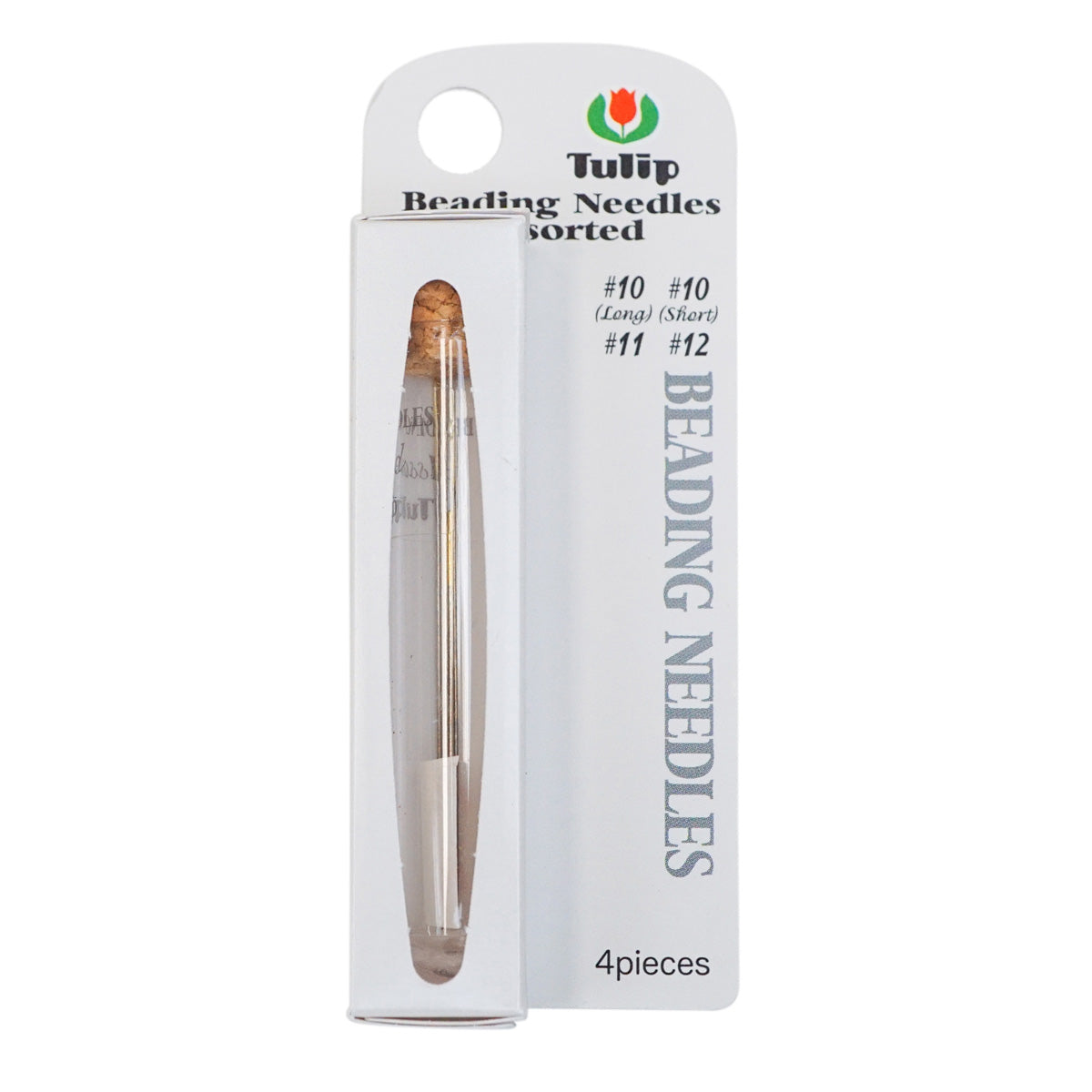 Tulip beading needles are springy so they can bend into tight spaces and bounce back to straight rather than curve or curl. Their tips are rounded to avoid splitting the thread and ease their sliding between beads. Their eyes are designed for easy threading.