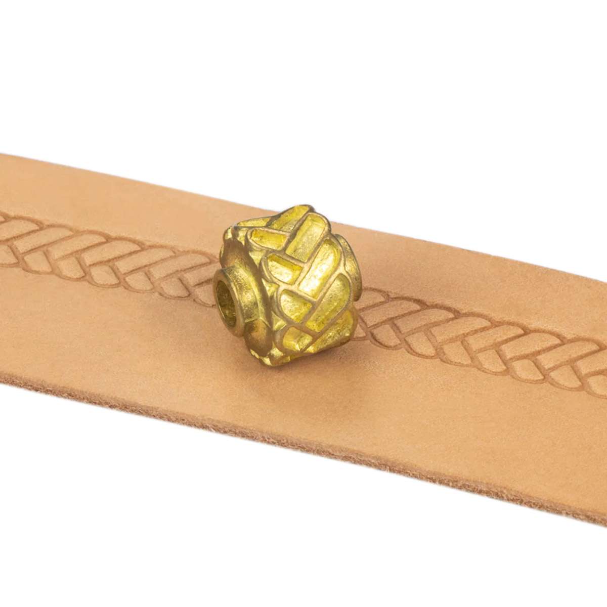 To Use: Mount the wheel into Embossing Carriage and secure into place. Then it’s simply a matter of rolling the wheel over your dampened veg. tanned leather. The more pressure you put on the carriage, the deeper and darker the impression. For a stronger and more durable impression, rock the wheel back and forth on the leather as you move along.