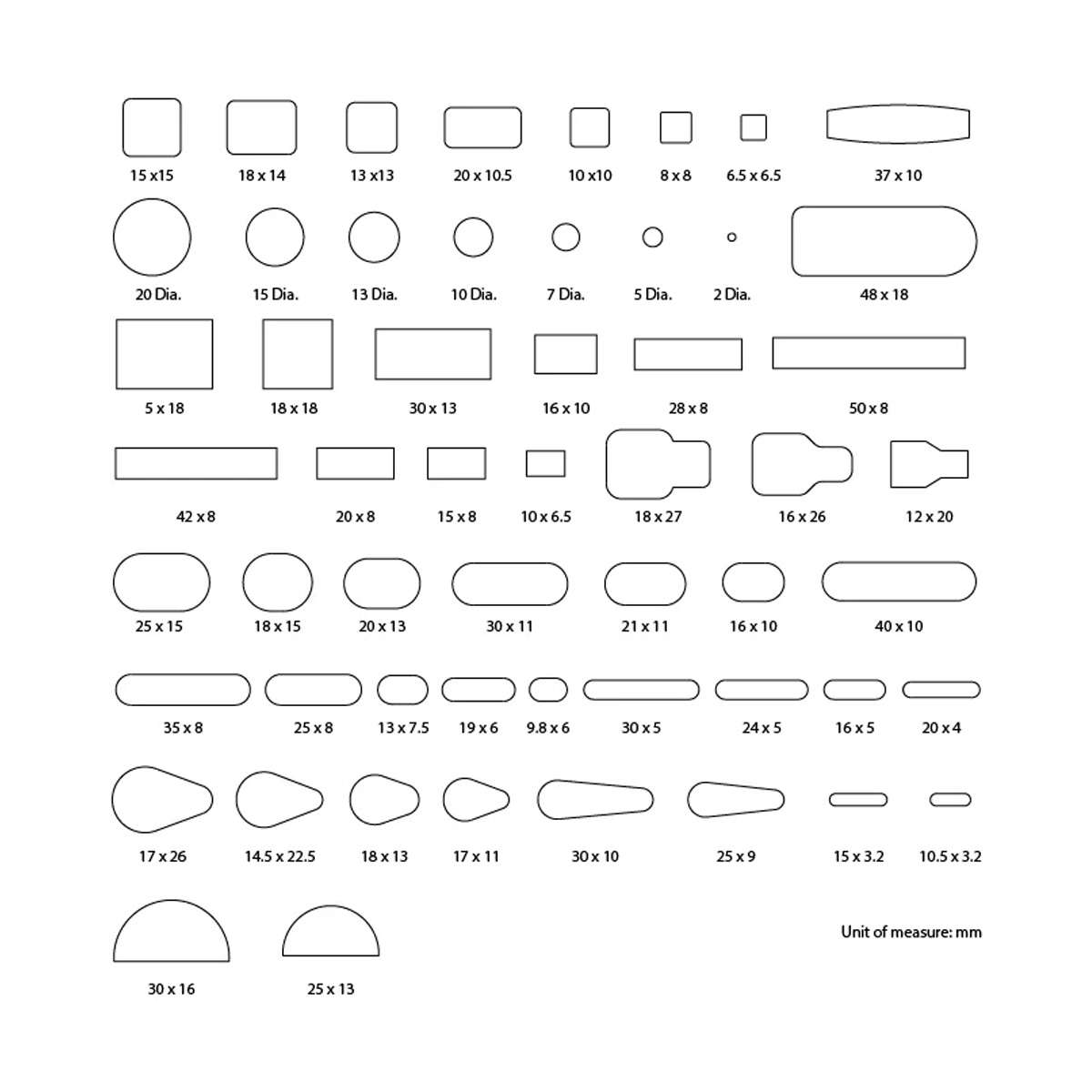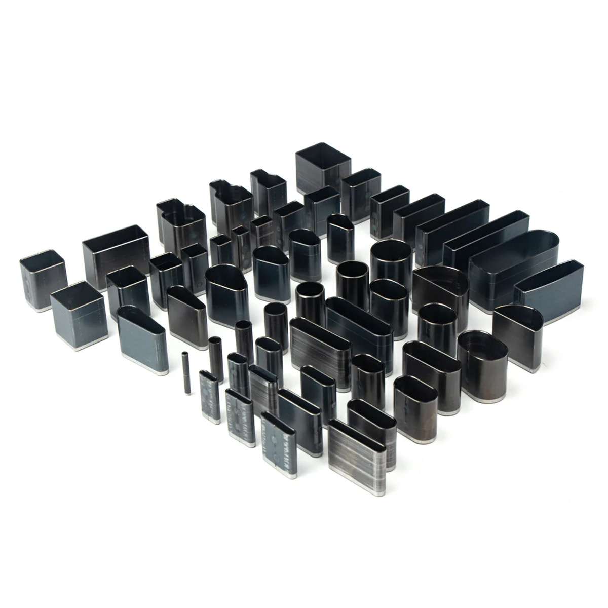 This set of Economy Punch Dies is a cost-effective way to cut shapes in various size and style options. Most punches can become quite expensive when you try to own each size, and that's where this die comes into play. This set includes 55 dies. You can punch in a few different ways. One way is to use a flat piece of wood that slightly covers the die and then strike it with a soft mallet or maul. Alternatively, you can use the Craftplus Multi-Purpose Leather Hand Press with a press plate to cut easily with even force. We recommend using a punch board underneath to protect the dies.Â