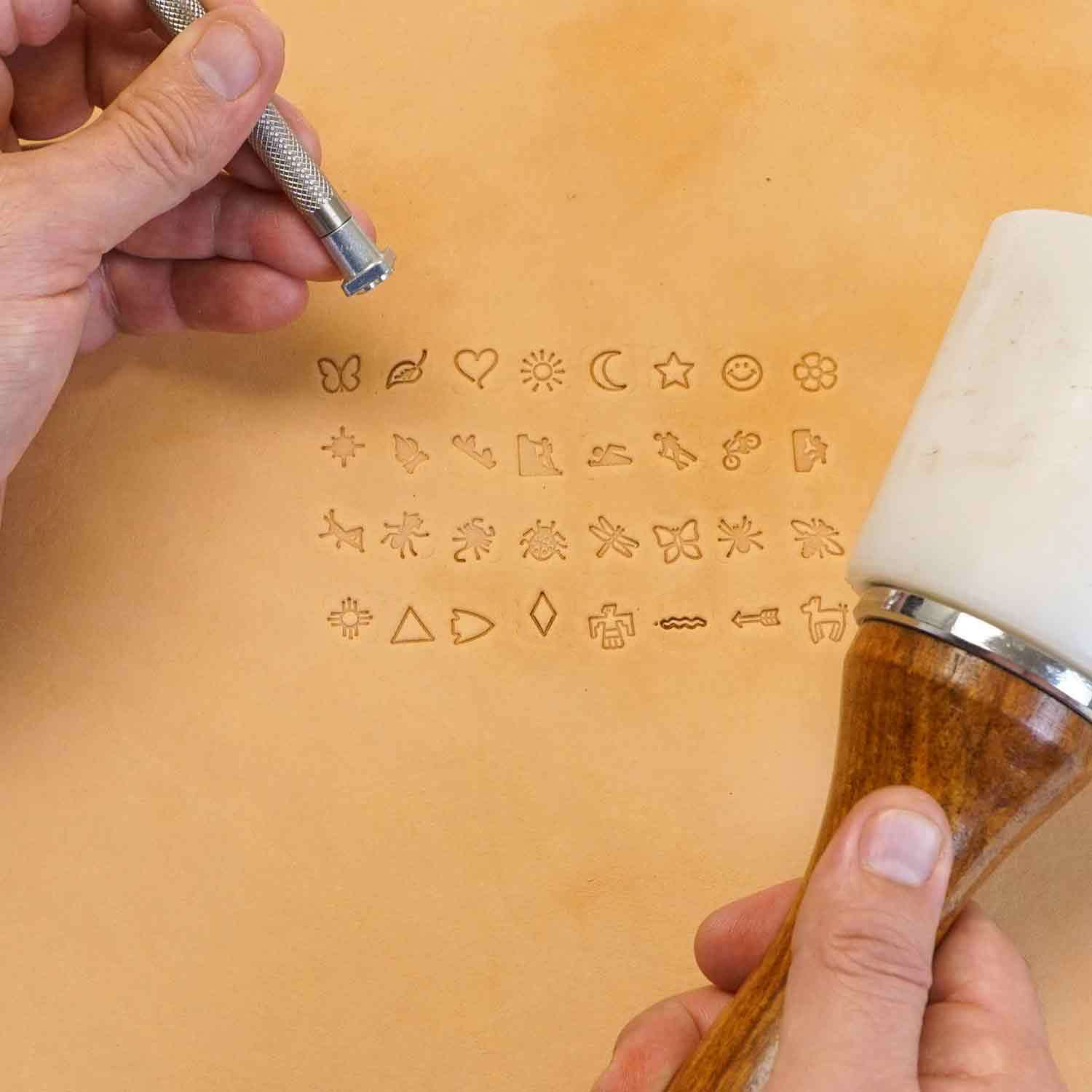 A stamp handle is also included, and super easy to use. Just pop the mini stamp head onto the handle and you are good to go! (You will need a mallet to strike the handle end to get your impression in leather). Great starter set, can help achieve basic leather craft skills through hands-on projects which will get you or your younger one involved in a hobby that can last a lifetime!