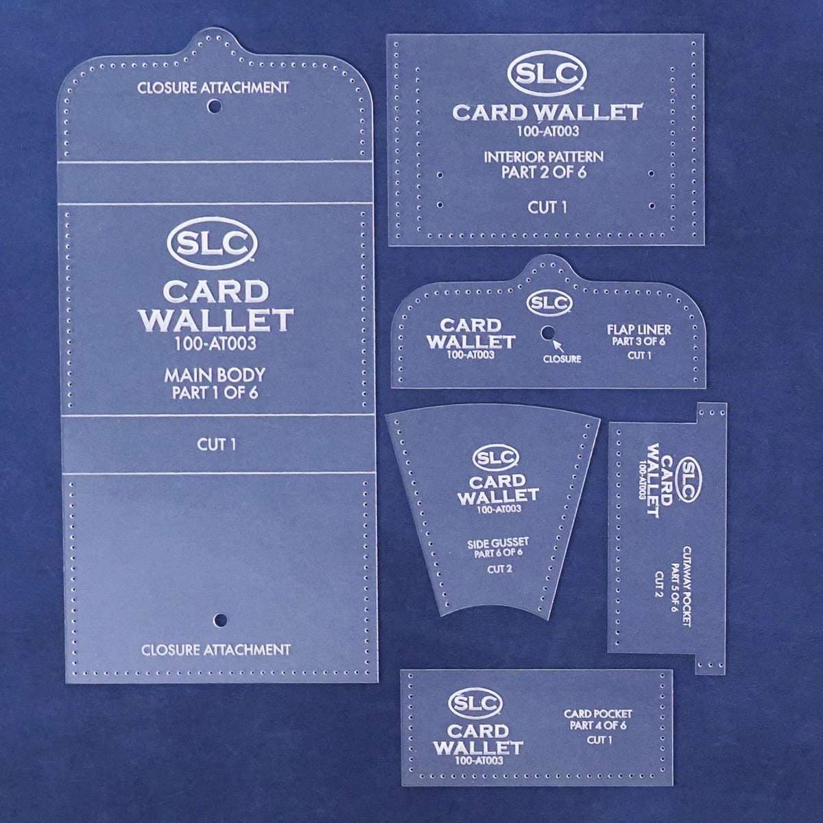 SLC project templates were designed to make your life easier AND help to make you feel like a professional leather crafter in no time at all! With fold lines, stitching holes, cutting instructions, and template part numbers clearly engraved into each acrylic piece, these templates are just what you need to guide you through a project and will stand up to use for years to come.