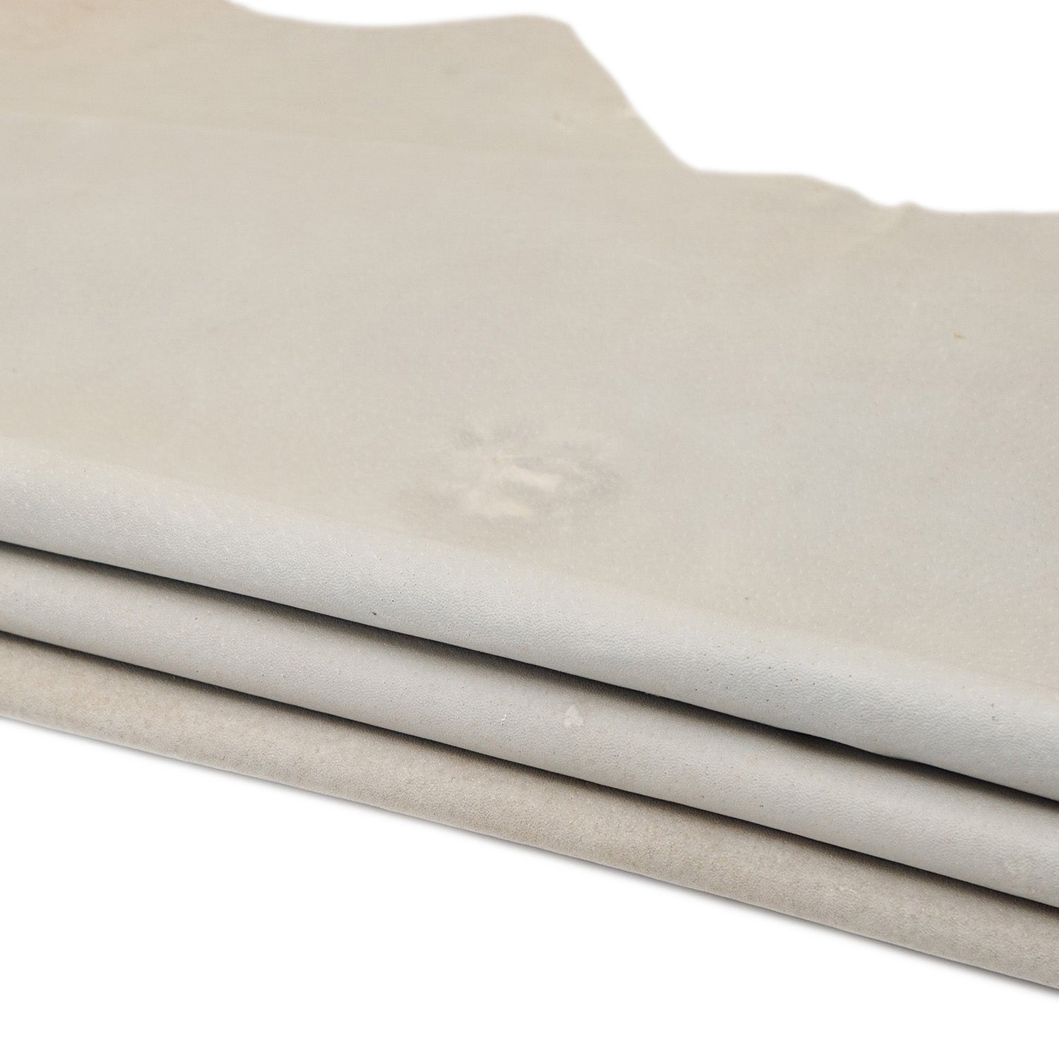 SPECIAL PURCHASE beige pigskin lining 1.5-2 oz. (0.6-0.8 mm. thick). Average Side is 13.25 Square feet. Sold by the Square foot, we WILL cut.