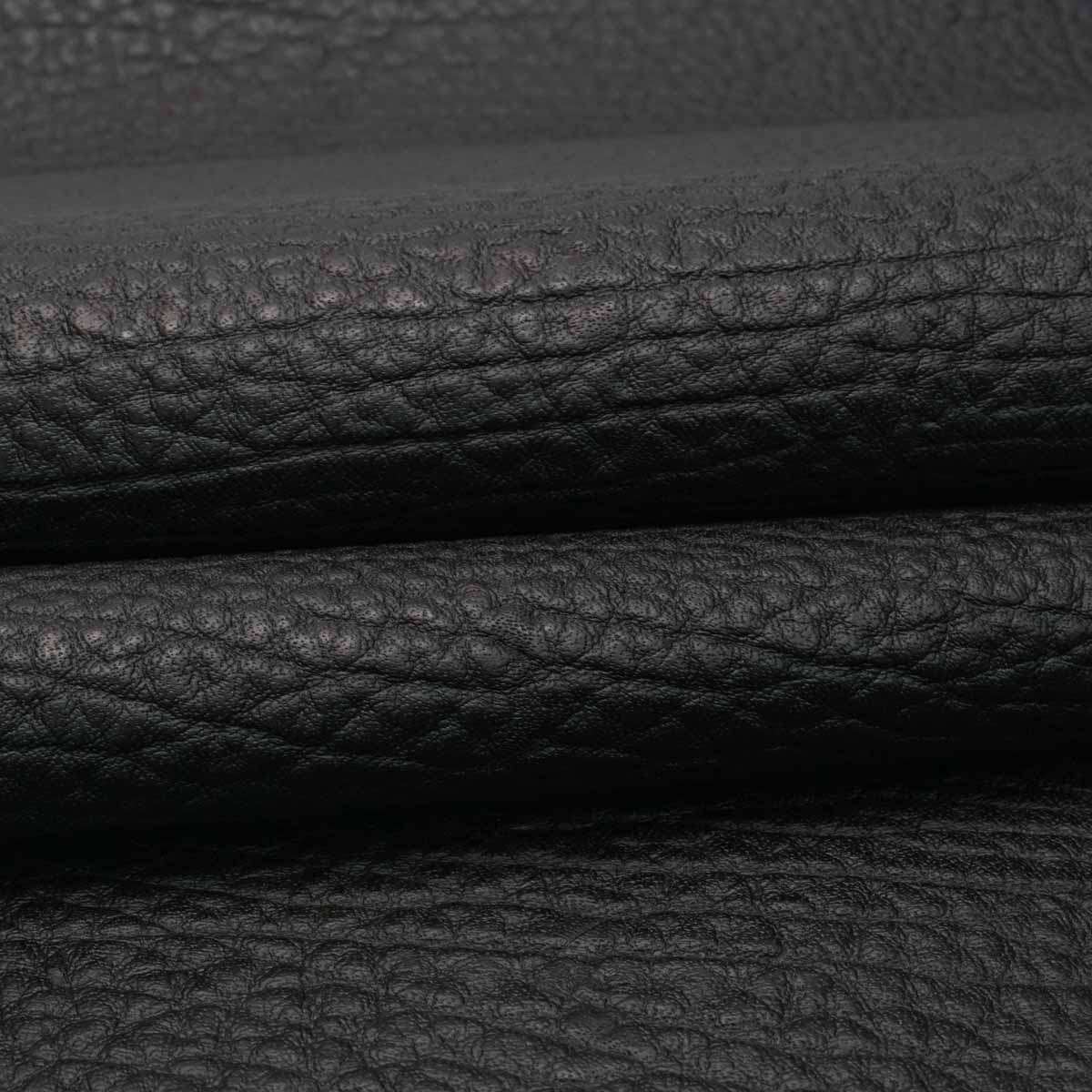 Special Purchase! Antique black finished cowhide splits embossed with a flat, semi-shrunken, pebble grained print. An economically friendly choice of leather that would be great for a plethora of leather projects! Wallets, card cases, handbags, clutches, and all sorts of other personal leather goods!