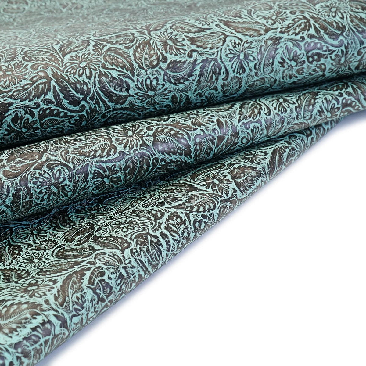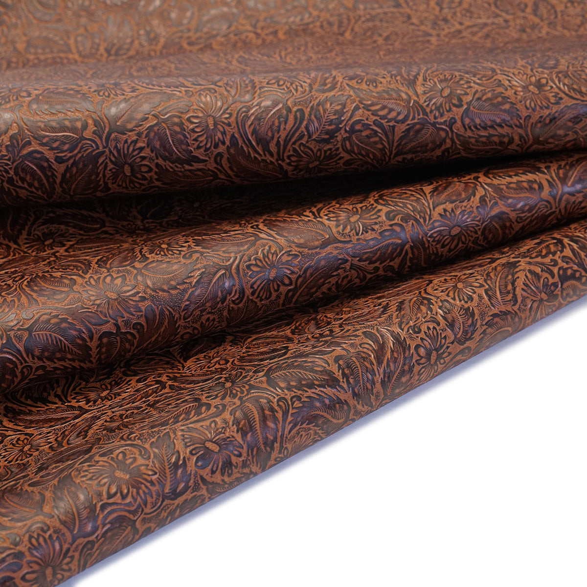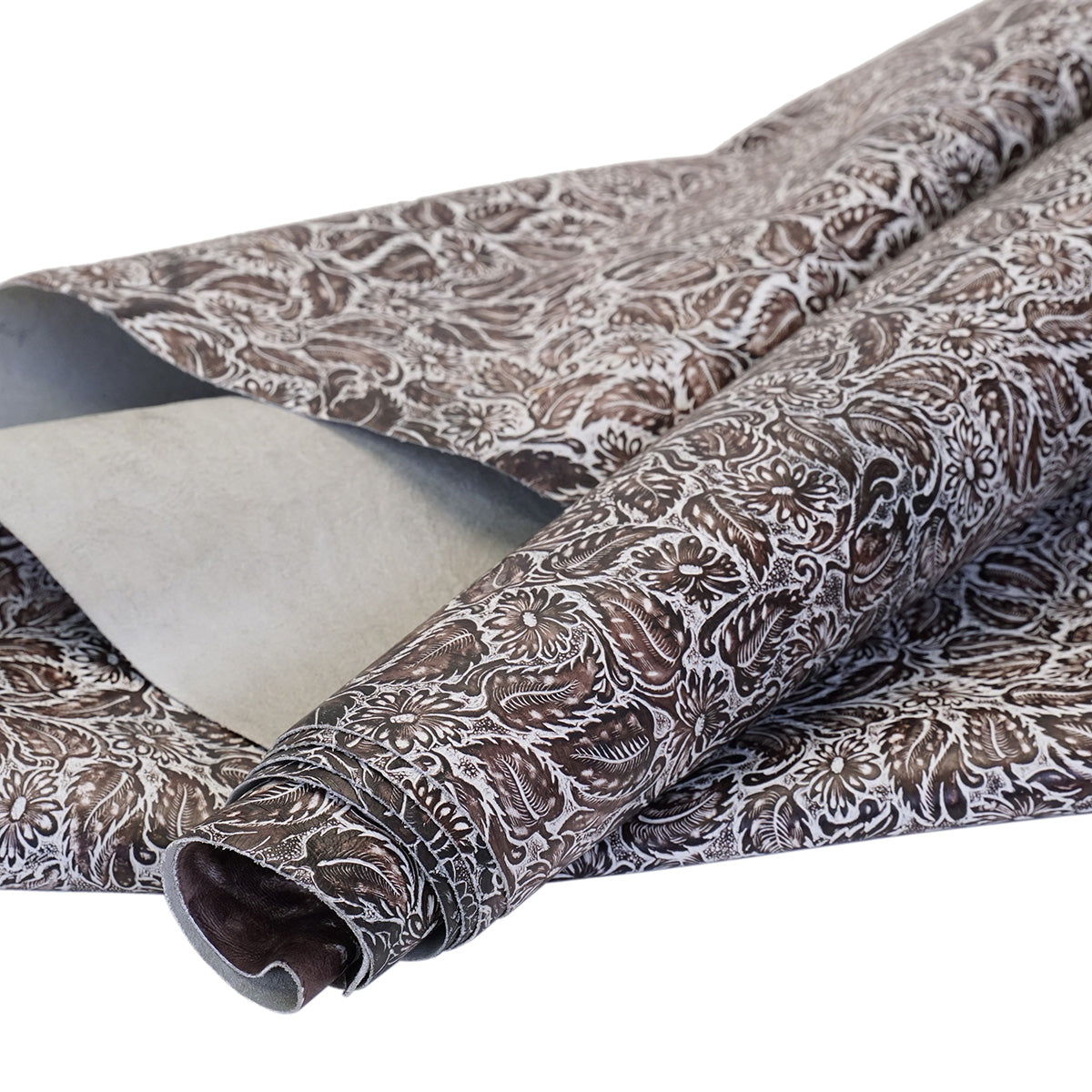 These floral embossed cow sides have been hand tipped for a striking two-tone finish! Available in four gorgeous colors, all tipped with a rich medium brown, and in such a way that gives the leather that highly desirable, worn, rustic look that never seems to go out of style! Great for high-end bags, clutches, and wallets, as well as laminated belts, upholstery, and home décor applications!