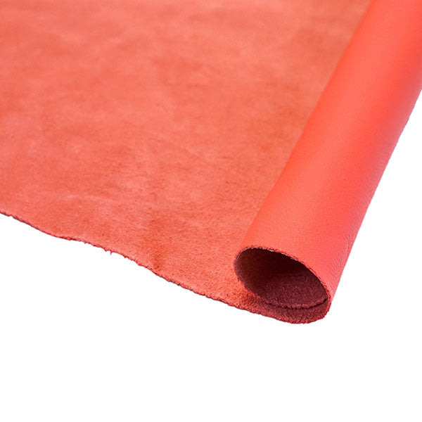 Lightweight Biker-Chap Side - Deep Sea Coral. 2 - 2 1/2 oz (.8 - 1 mm.). Sides average 22 - 25 sq. ft. Sold by the sq. ft. We will cut.