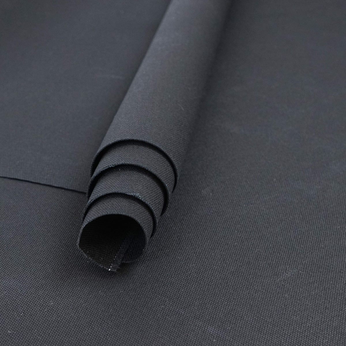 #8 Duck Martexin Original Wax "Plain Weave" Canvas - Black. 100% Cotton. Produced by Fairfield Textile. Available in 1/2 yard (18" x 53-58") and 1 yard (36" x 53-58") increments. ~820 GSM including finish.