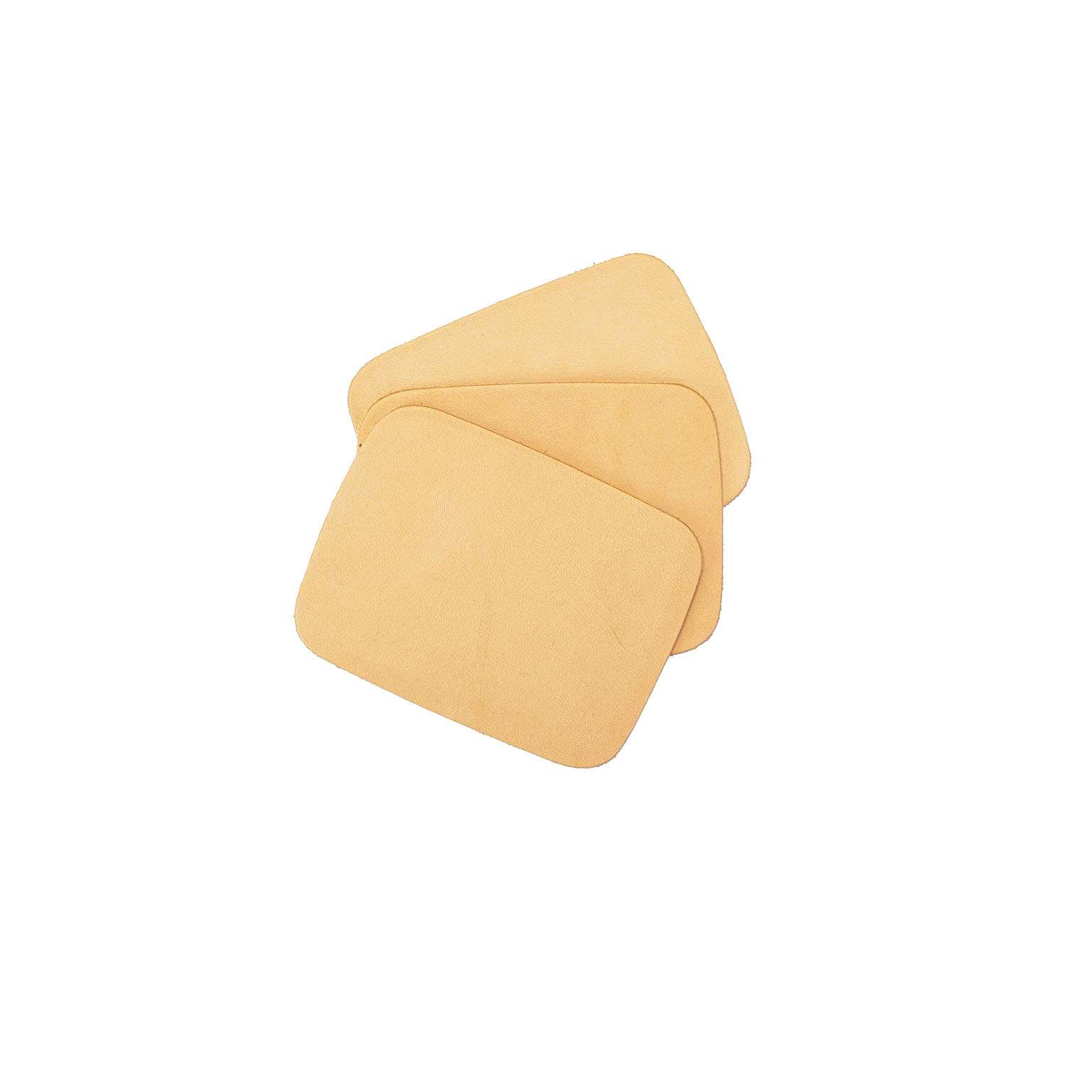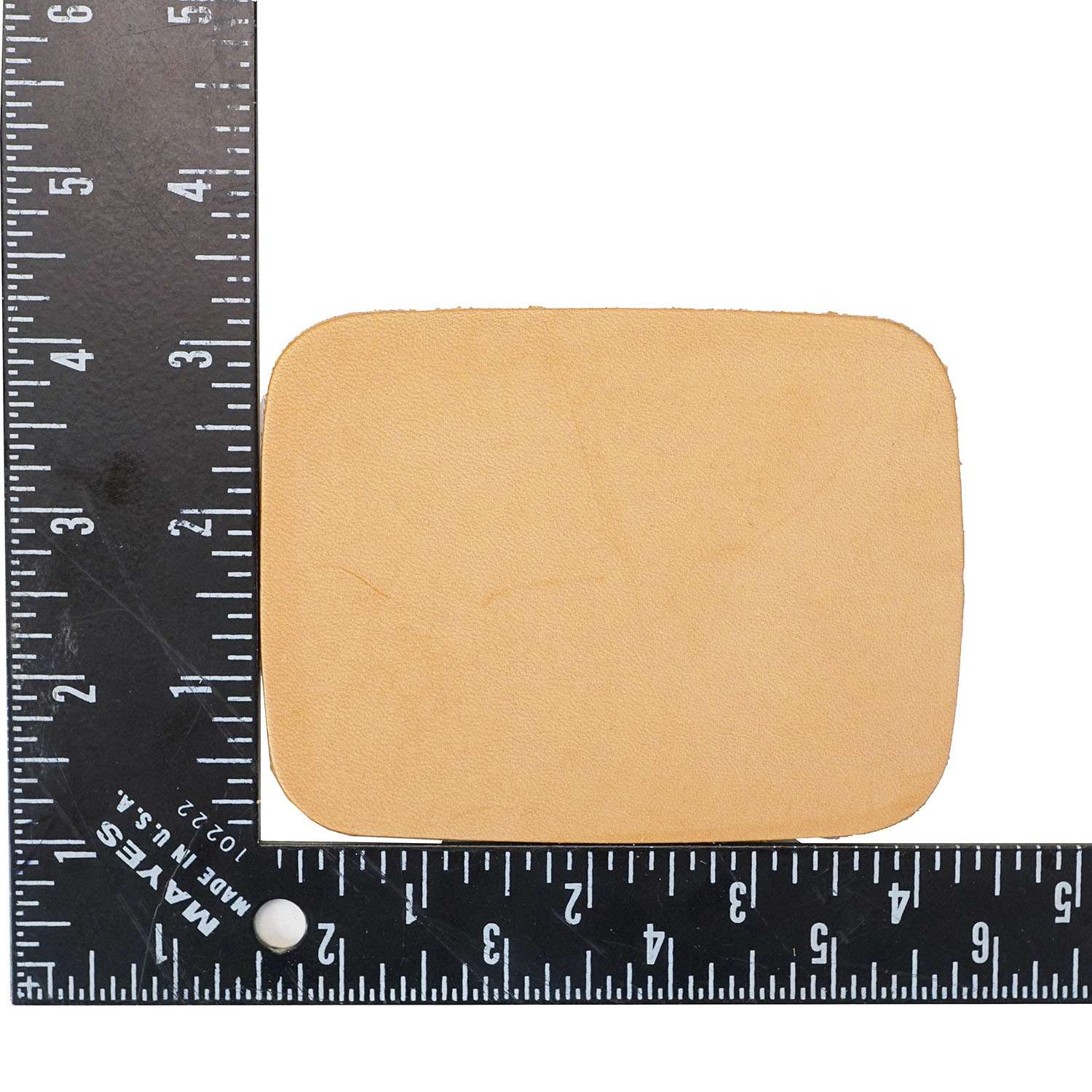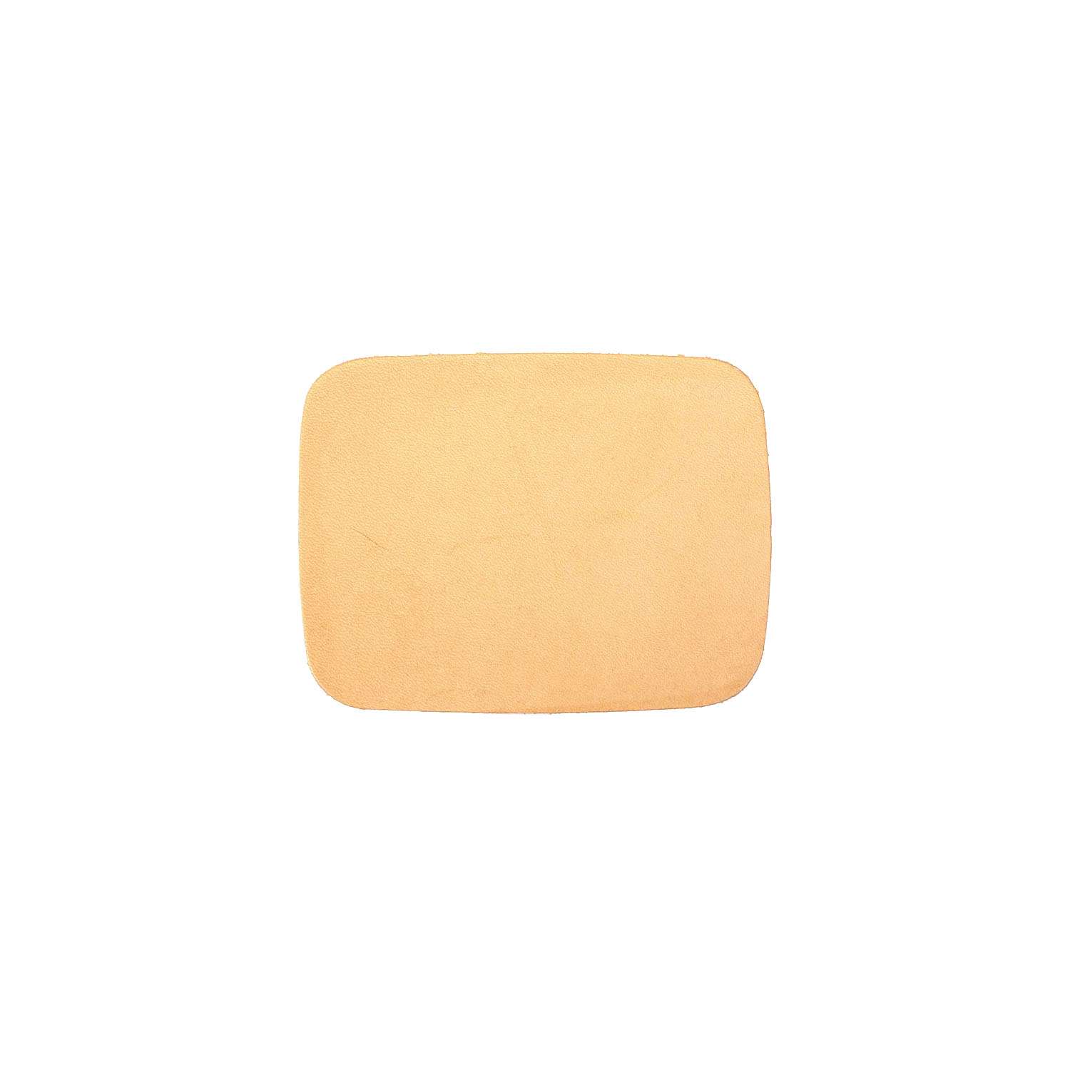 Shape - Hat Patch - Round Corner - Large. Approximate measurements - 3 1/4" x 4 1/4". (8.27 x 11.43 cm.) Cut from 5 - 6 oz. (2 - 2.4 mm.) natural veg tan leather. Available as Each, 25 Pack, and 100 Pack. Manufactured by SLC.