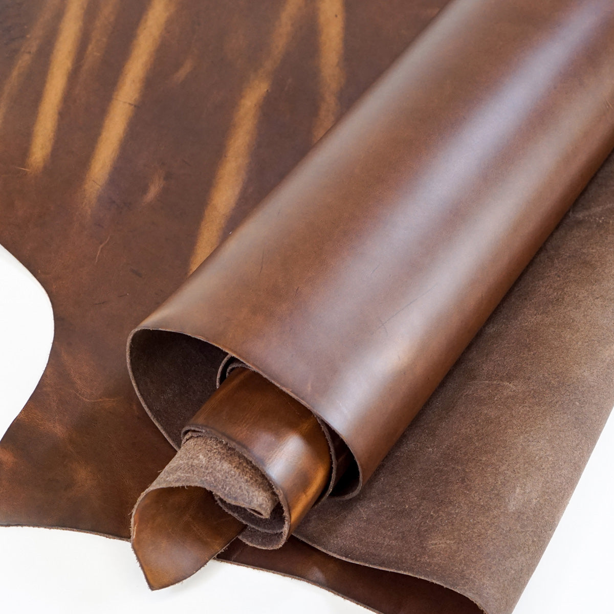 This classic, legendary leather has become a leather of choice for those making high-end leather goods. Consistent colors with a gorgeous waxy style pull-up with little-to-no stretch, this leather offers the perfect buttery feel for premium accessories such as bags, duffles, backpacks, wallets, cases, chaps, and so much more! Each color is available in two weights (3-4oz and 5-6oz), and as perfectly pre-cut pieces!